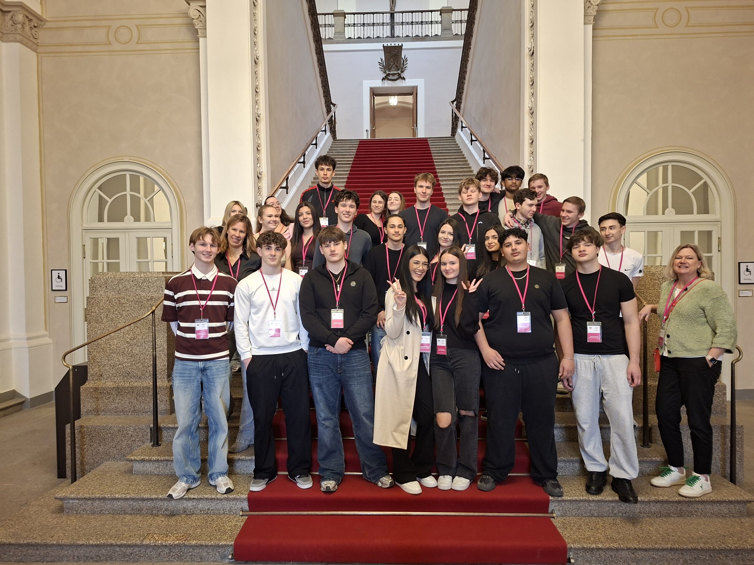 Zum Abschluss des Tages machte die Klasse noch ein gemeinsames Klassenfoto im Landtag. Danach ging es zurück nach Nürnberg. Gegen 17:30 Uhr kam die Klasse wieder an der Schule an, und die Schülerinnen und Schüler gingen mit vielen neuen Eindrücken nach Hause.